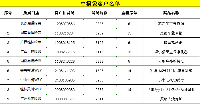 中獎客戶名單